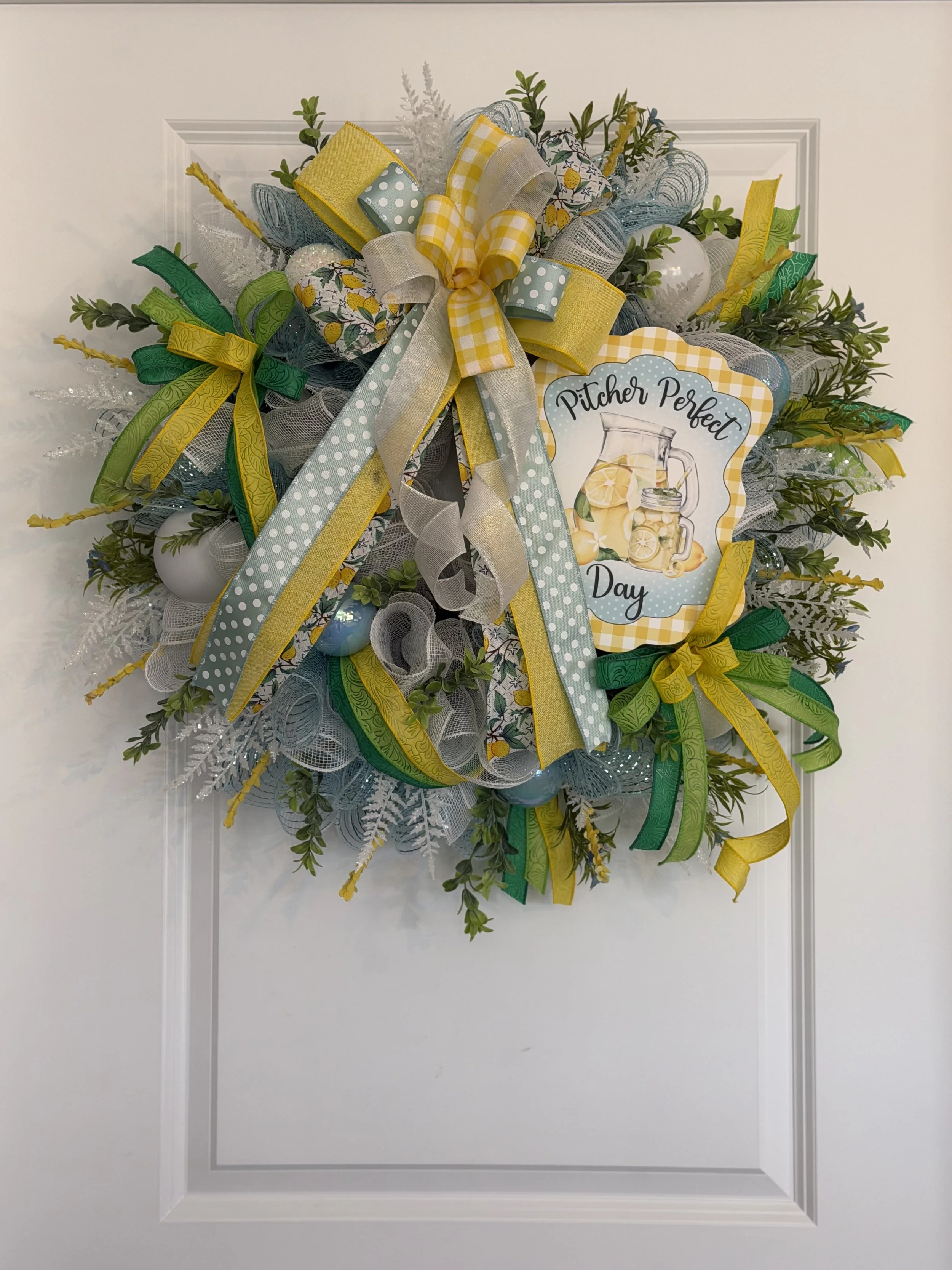 This “Lemon Welcome” wreath measures approximately 30 inches wide by 31 inches in length. $60 plus shipping.